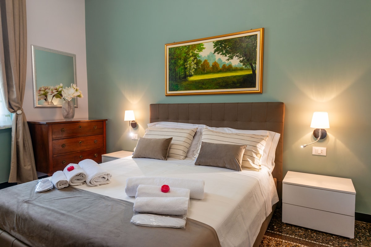 Welcome to the apartment with an exclusive terrace offering stunning views of the historic Porta Soprana Bright, newly renovated, and located on the 2nd floor with elevator in a historic building You'll find a Dorelan mattress with topper, a fully equipped kitchen, a spacious bathroom, and every comfort Centrally located, where the old meets the new, you'll enjoy the authentic soul of Genoa: the historic center, art, bars, restaurants and public transport We look forward to welcoming you 💚