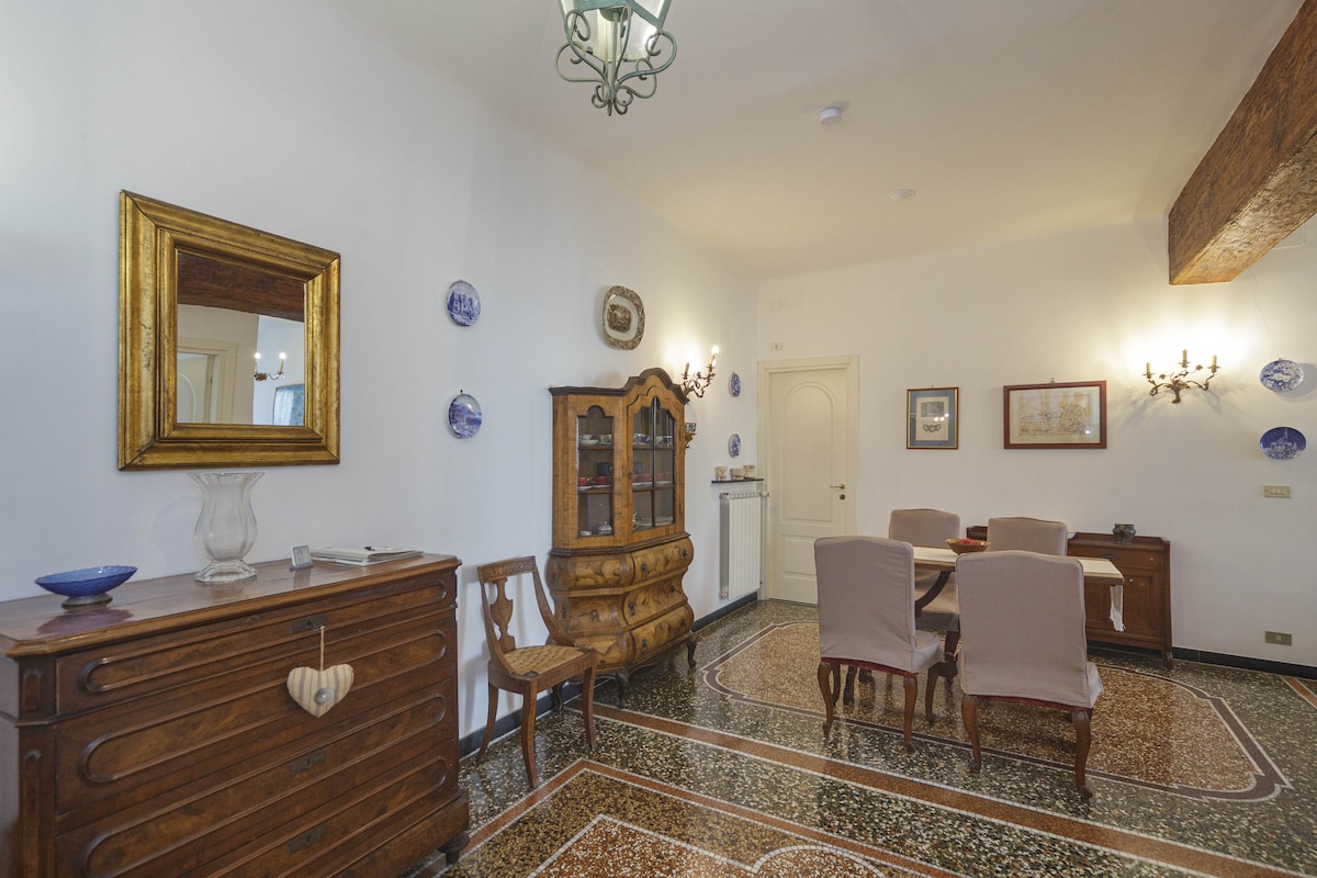 Elegant and bright flat Overlooking the central Piazza Matteotti Opposite the renowned Palazzo Ducale Composed of: -1 distinguished open space living room with comfortable sofa bed and high frescoed ceiling -1 classy dining area with designer table and chairs -1 modern kitchen with all comforts -1 double bedroom located on the mezzanine overlooking the living room also illuminated by the 3 majestic windows -1 modern bathroom complete with glass shower