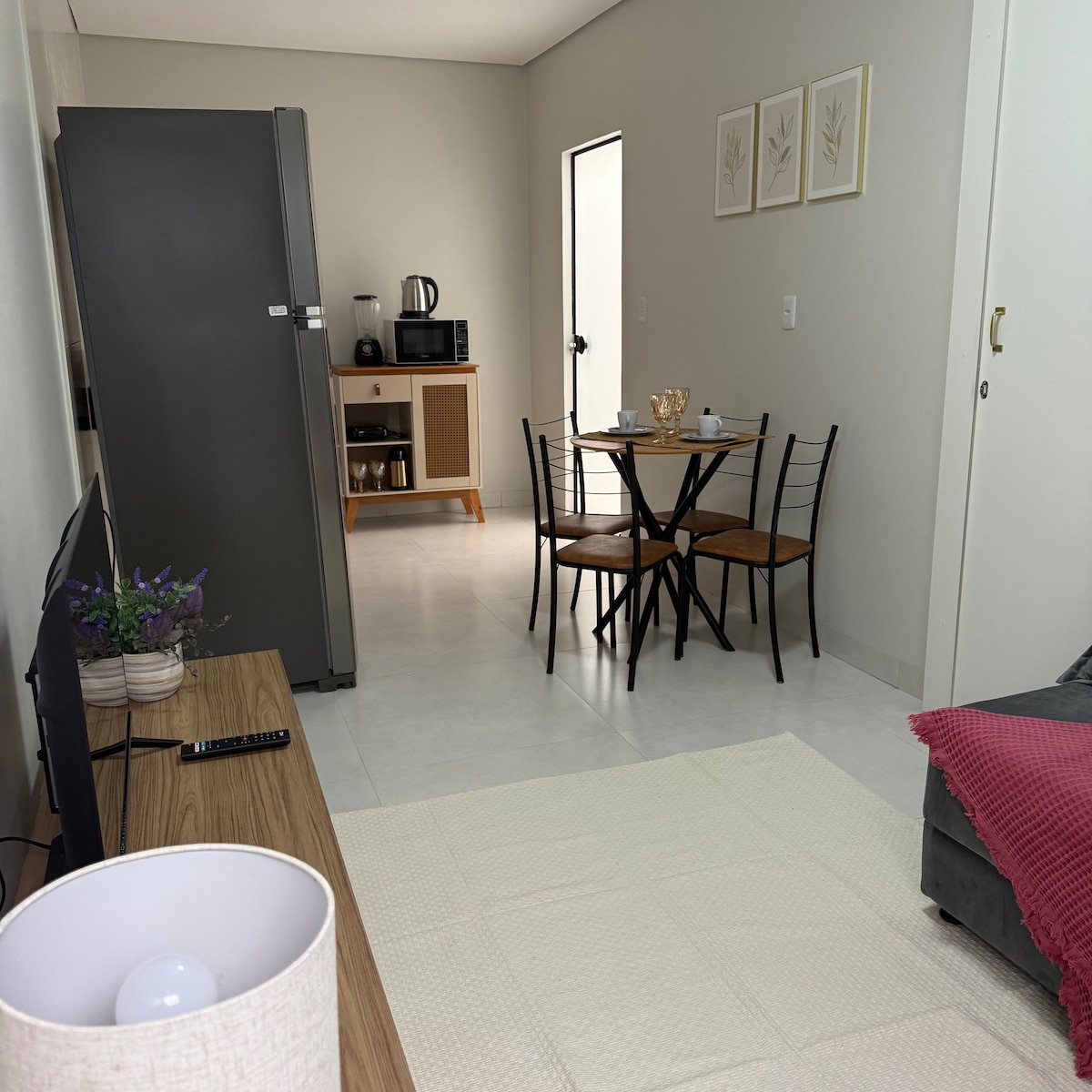 Abrace a simplicidade neste lugar tranquilo, seguro e bem localizado em Luís Eduardo Magalhães - BA no Bairro Jardim Primavera. Nossa kitnet é bem espaçosa com 30 m2 e aconchegante contendo seguintes ambientes: 1-Sala/Cozinha com Utensílios e Mesa 1-Quarto com Ar Condicionado 1-Banheiro 1-Lavanderia 1-Garagem com Portão eletrônico Será uma grande satisfação receber você e sua família em nosso espaço. Qualquer dúvida estamos a disposição. Att,