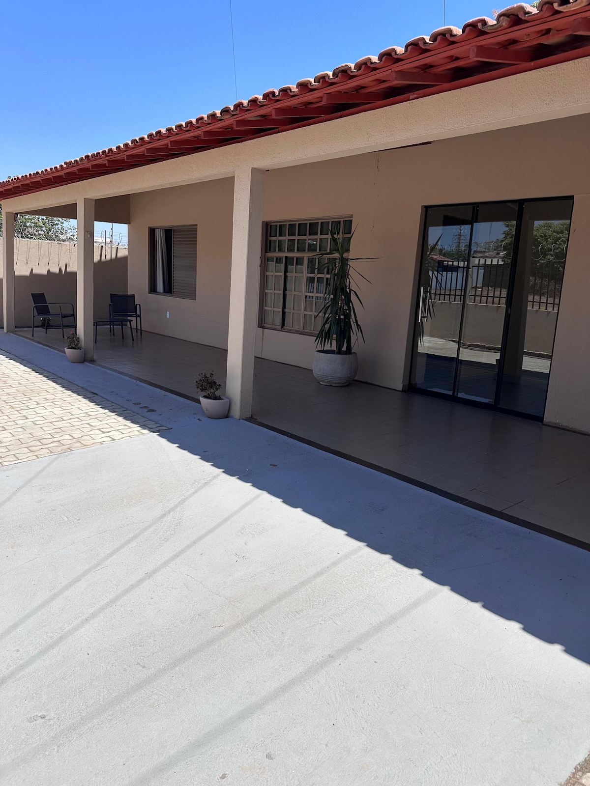 1/4 c/ar condicionado, 1 ventilador, máquina de lavar, utensílio de cozinha completo, Estacionamento na frente da casa (rua). Disponibilidade de 1 cama de casal + sofá-cama + colchão de solteiro. Obs: Lavanderia e rede em espaço separado, compartilhado com outro Airbnb. Mês inteiro desconto de 20% a combinar! Mercado ao lado, academia e espetinho em frente, posto de gasolina e farmácia à 300m.