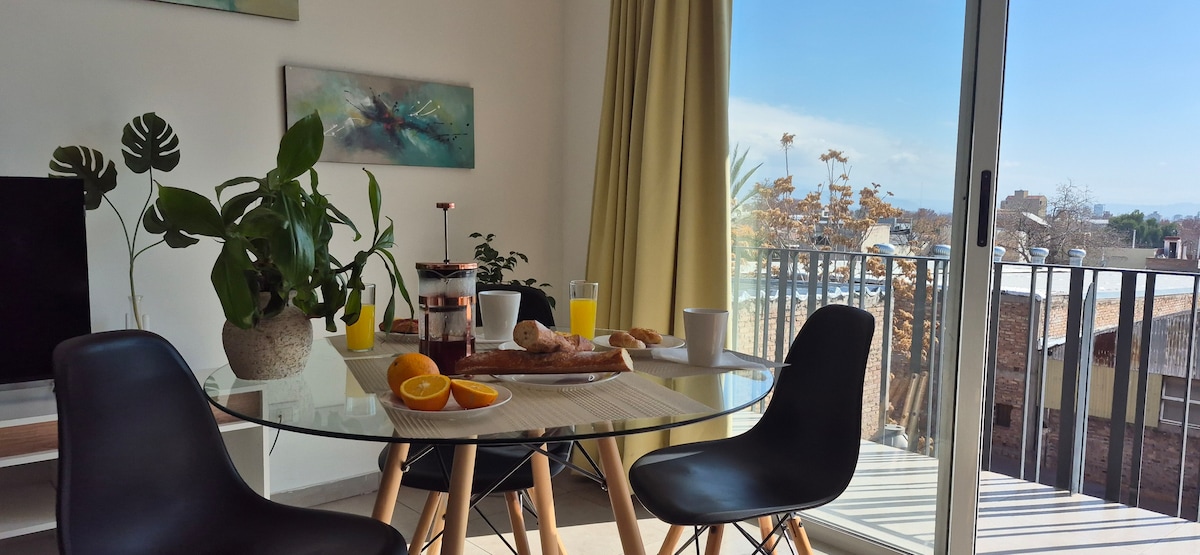 Immerse yourself in the authentic essence of Mendoza by staying in our new, comfortable, and tranquil apartment. Located in the heart of Mendoza: the Bombal neighborhood. A picturesque neighborhood with green spaces and plenty of specialty cafes. You are a 15-minute walk from the city center and General San Martín Park. The space features hot/cold air conditioning, a new mattress, Wi-Fi, direct TV, and private parking. We provide guidance on wine tourism.