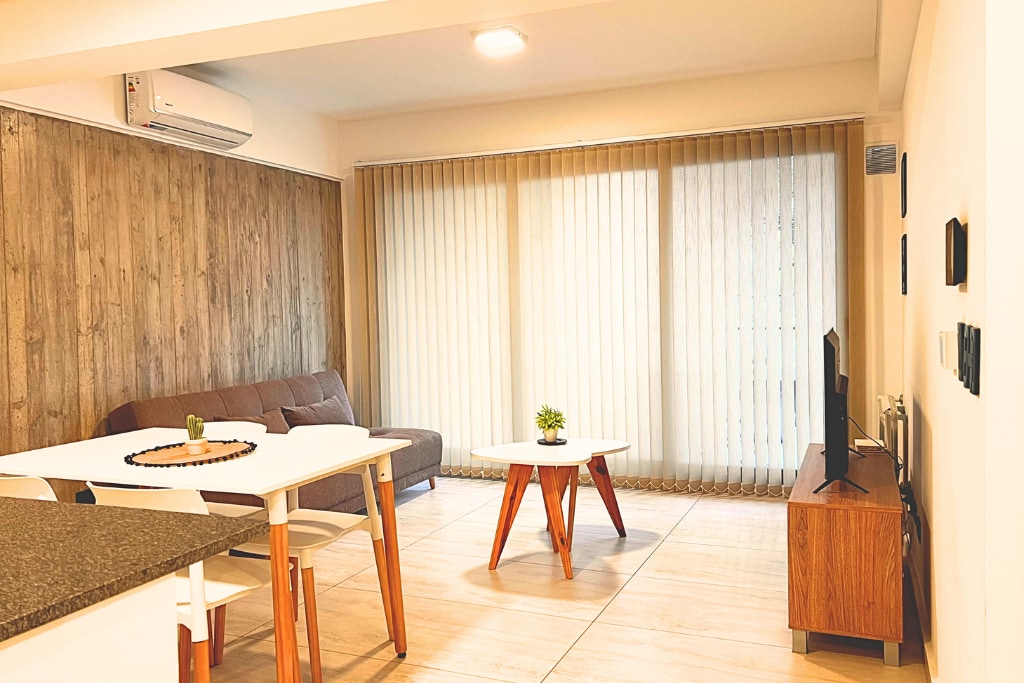 Hermoso y moderno apartamento en PLANTA ALTA con estacionamiento (4.75mts de largo) en el centro de Luján de Cuyo. A 2 cuadras de la calle Roque Sáenz Peña. Cerca de bodegas, restaurantes y comercios. Ubicado en calle sin salida lo que permite más seguridad y tranquilidad. Con ventanales orientados al norte que le brindan iluminación y ventilación natural. El departamento cuenta con las comodidades necesarias para que tengas una excelente estadía y puedas disfrutar de nuestra hermosa Mendoza.