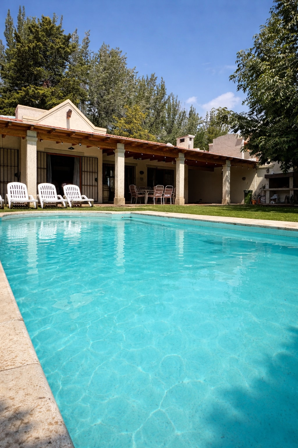 Colonial-style guest house with an artistic imprint, formerly owned by sculptor Eliana Molinelli.Carefully maintained spaces surrounded by greenery, with a swimming pool and an outdoor barbecue area.Located within walking distance of wineries, cafés, restaurants and local shops, yet set back from the main road, offering a quiet environment.This house is designed for guests who value calm, silence, remote work and staying in a place with artistic identity rather than a standard accommodation.