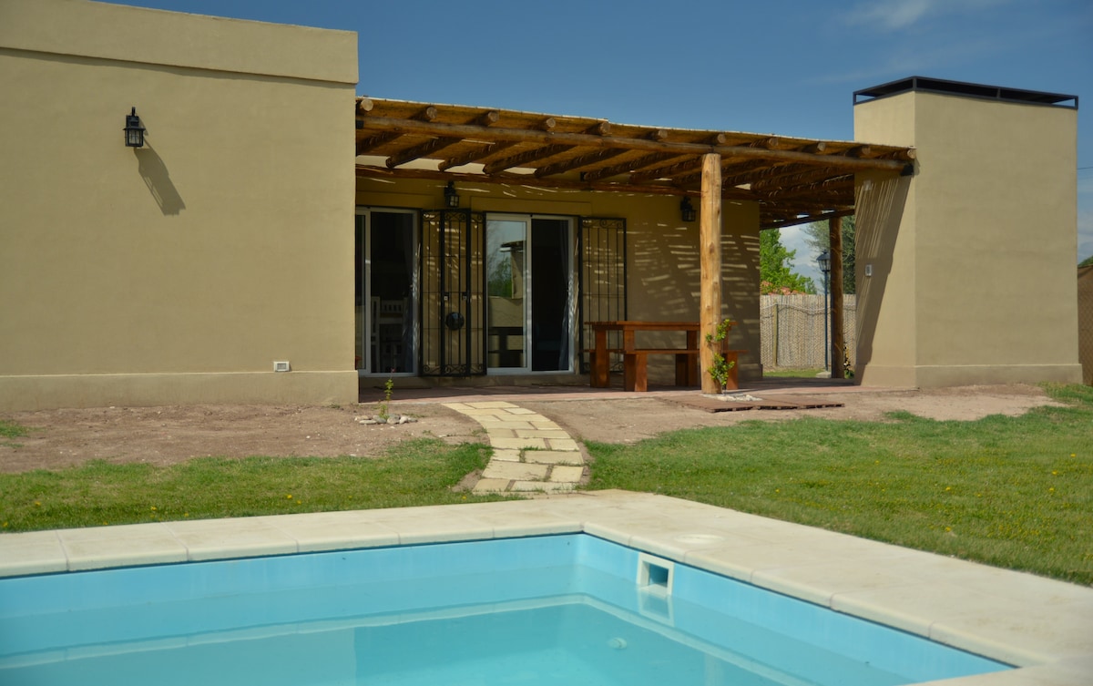 A cabin with a private hot tub the pool and a quincho are shared with one other cabin great for a familiy are a group of friends there is one other cabin on the property so the quincho and Pool is shared with one other cabin. Great location 15 minutes to downtown lujan 10 minutes to chacras de Coria , 15 minutes to porterllos. 5 minutes to the wine roads of Lujan de cuyo. 5 minutes to bodega Lagarde, Durigutti, La Madrid. Private neighborhood 24 hour security. One place, many experiences.