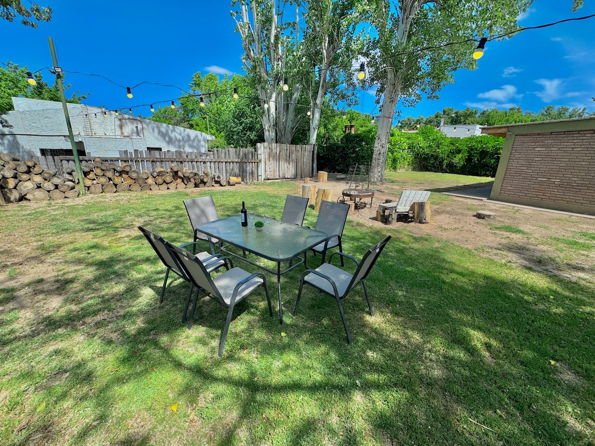 Wi-Fi 200mbps AC Winery 4 bedrooms 🚽🚿 3 bathroom 🏊♂️ Pool. Beautiful house with a large garden, swimming pool, and spacious rooms, located in a gated community in Chacras de Coria, a charming area known for its wineries, vineyards, and excellent gastronomy. Designed with bright and open common areas, it's perfect for families or large groups to enjoy together. It features a swimming pool, barbecue area, and a cozy living-dining room with a magnificent fireplace to enjoy during the winter.