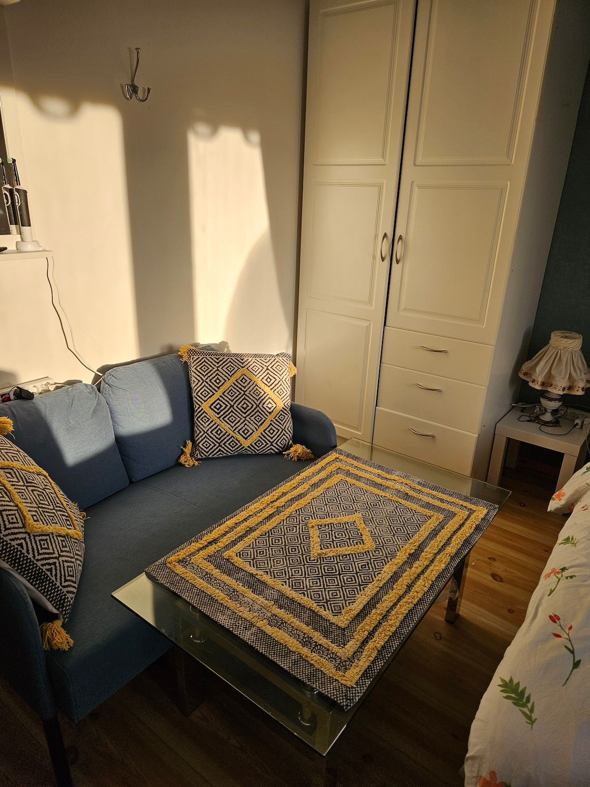 Liten lägenhet centralt i Luleå med egen ingång, hall, badrum och sovrum. Det finns inte kök, men det finns en liten kyl, micro, vattenkokare och enklare husgeråd. Det finns gatuparkering precis utanför huset. Vi bor i lägenheten bredvid. Det är en innerdörr mellan lägenheterna men den är blockerad och bra isolerad så det är inte så lyhört mellan lägenheterna. Mysigt och prisvärt boende!