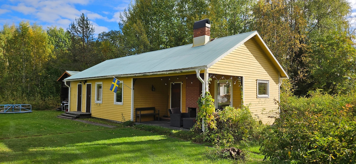 WC, shower (sauna not for use) fridge/freezer, AC, near the nature. You sleep in a sofa bed for 2 persons in the livingroom. Not a real kitchen but you can make some food in a microwave oven (I can get you a 2 plate stove to use outside on the porch), coffee brewer, waterboiler. Good restaurant/pub 100 m, Lule river with beaches 200 m, Shopping area 2,7 km, Bus stop 1.9 km, Airport 8 km, Luleå city 7 km. Pickup from/to airport 200SEK/20€ each way if I am available (ask before)