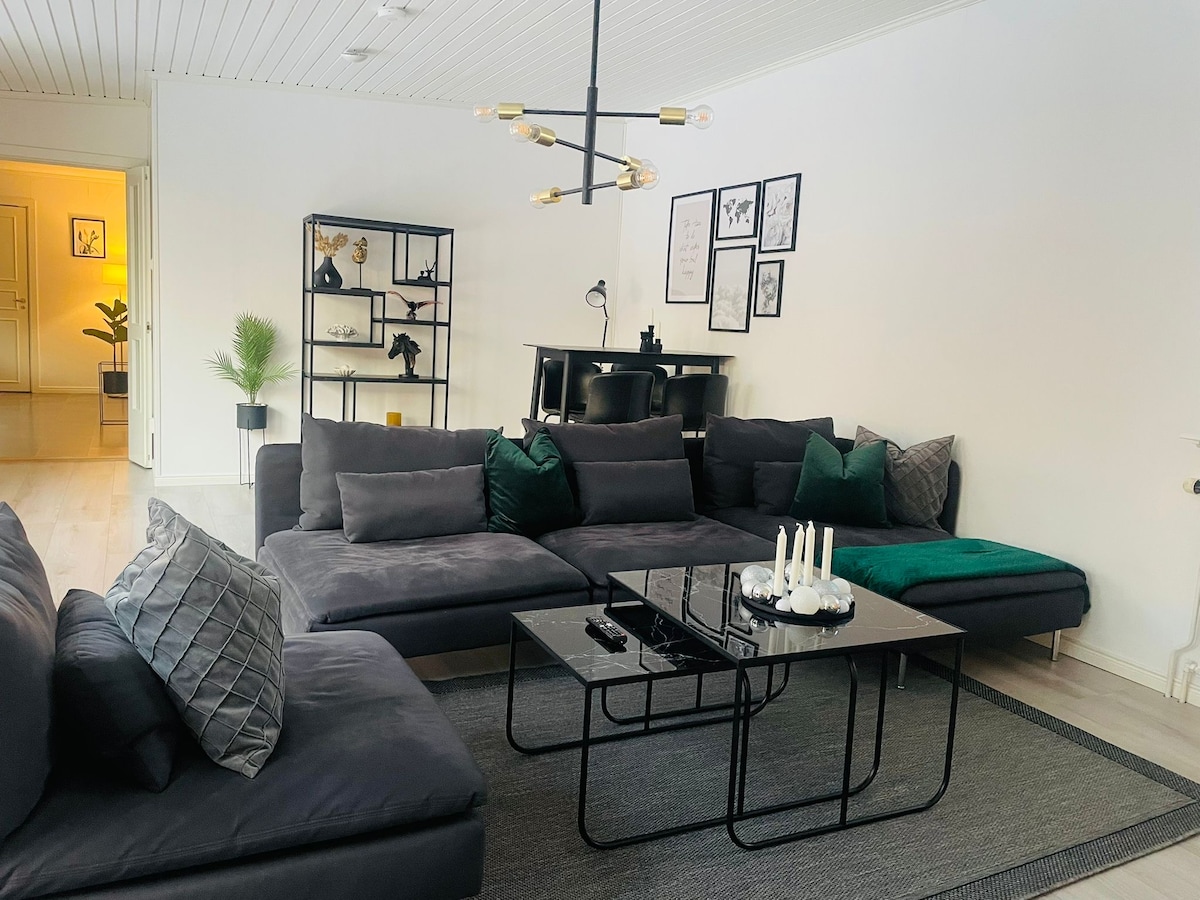 Charming house with an open and large living room that is perfect for relaxing, working or for family. The house is in a very calm area, very close to a grocery store, A large living room with an indoor fireplace and a big TV screen, free Netflix, HBO, Disney and of course many other applications in smart TV. A fully equipped kitchen with a new stove, dishwasher, and all equipment you need. Three bedrooms, two with king size beds. A large terrace and BBQ place. A rental car can be available.