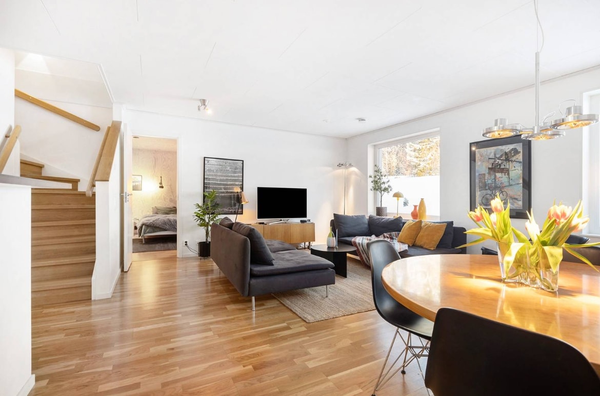 Charming house with an open and large living room that is perfect for relaxing, working or for family. The house is in a very calm area, very close to a grocery store, A large living room with an indoor fireplace and a big TV screen, free Netflix, HBO, Disney and of course many other applications in smart TV. A fully equipped kitchen with a new stove, dishwasher, and all equipment you need. Three bedrooms, two with king size beds. A large terrace and BBQ place. A rental car can be available.