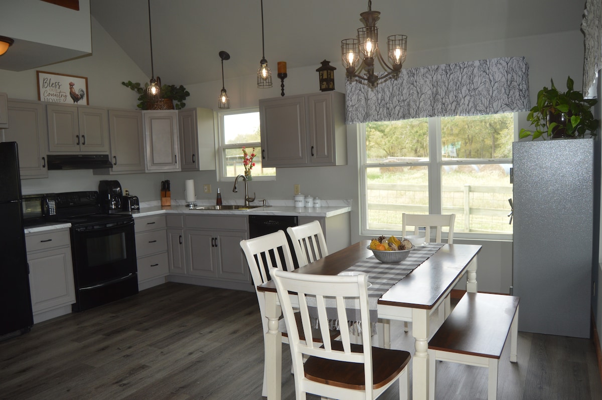 Unwind in this modern cabin where nature meets comfort. Enjoy an interactive experience with friendly farm animals eager for pets and treats. Soak in views of the serene pond, grazing cows, and horses. Explore trails on secluded acreage. Light-filtering blinds, AC, and Starlink WiFi. Built in 2023. We have piggies, mini goats, cows, horses, donkeys, and a black lab to say hello to Close to Circuit of the Americas, Bastrop, Austin Airport, and Smithville.