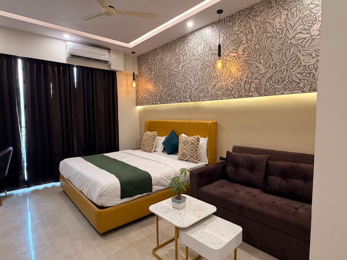Get a step closer to nature, comfort and convenience at our charming Bluebell cottage! 10 minutes from Airport, 20 mins from Charbagh railway station, right behind the renowned Lulu Mall, stone throw away from the Palassio Mall, a mere 500 meters from Medanta Hospital, our cottage is strategically positioned for an unparalleled stay. Located in the heart of Sushant Golf City, it serves as the ideal hub for your visit to Lucknow! Along with a king bed, you get two additional folding beds.