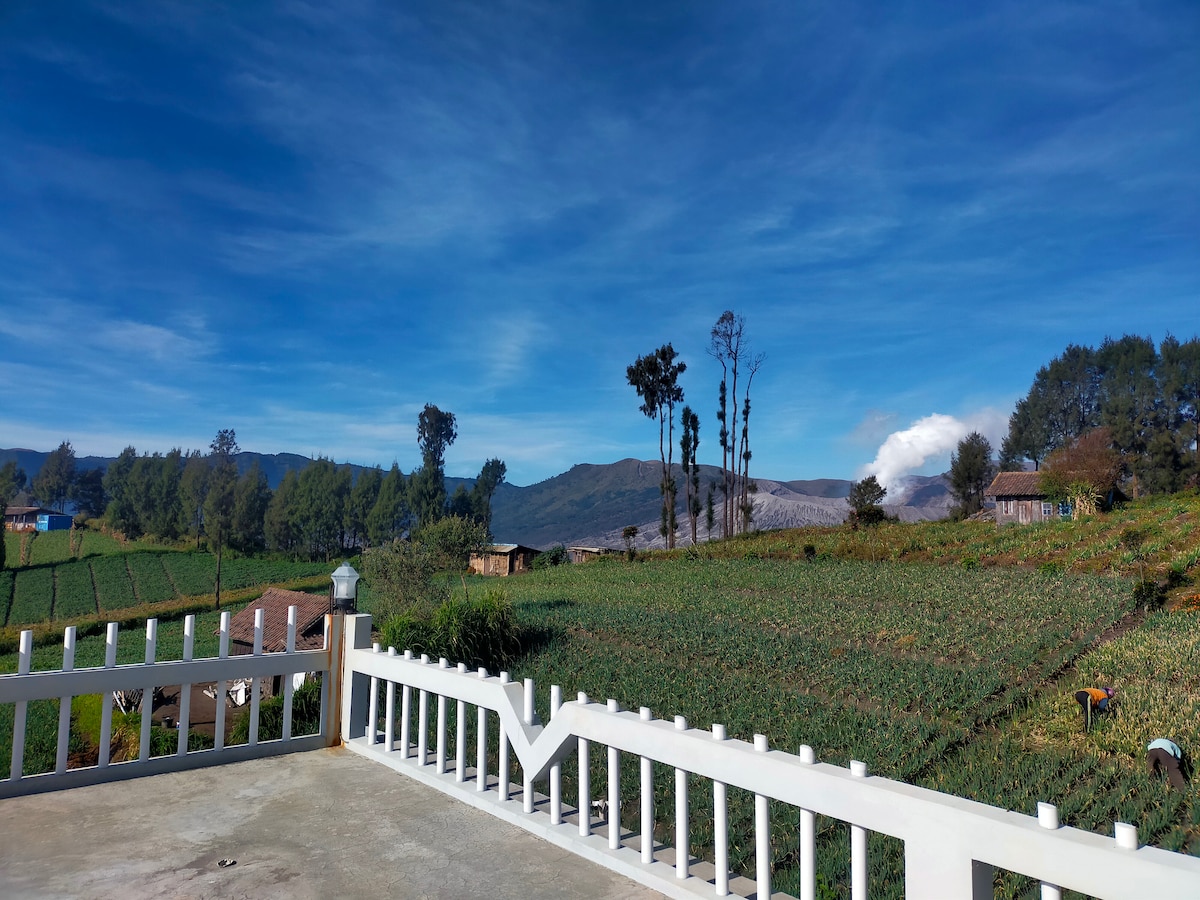The double room has a private bathroom with hot shower water. Located only 3km from Mt. Bromo. From the parking park and public space over looking to Mt. Bromo, Mt. Batok, the temple and sand area. It takes 60 minutes walk to Seruni hill point sunrise view. The bedroom has not view direct view to Mount Bromo. Only at public space may have view direct to the Mt. Bromo and Sand area.