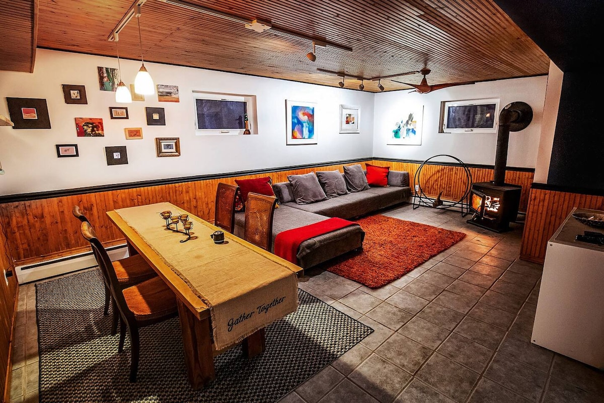 Newly renovated two bedroom, two bath cottage with four person barrel sauna at Swinging Bridge Reservoir, Sullivan County's largest motorboat lake. Updated amenities and mid-century and modern furniture provide a welcome respite from the city just 90 miles away. Take in the local scenery, catch a show at the Forestburgh Playhouse or stop into some of the local vineyards and restaurants. For a low key weekend, hang out by the fireplace playing some records and cooking a meal.