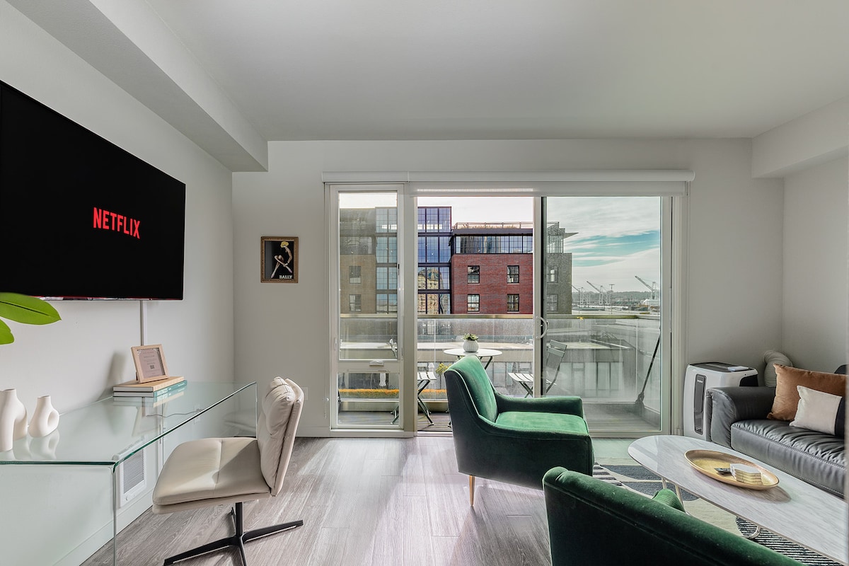 景观1卧室豪华套房,5分钟到2个体育场和市中心