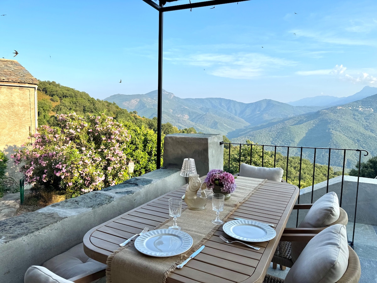 Atypique, entièrement rénovée, ZILIA (au départ de randonnées) est un petit village connu pour sa source à 10 minutes des plus belles plages de la région, paisible, avec un coucher de soleil extraordinaire. Cette maison vous ravira par son cachet, sa touche moderne et son élégance. Cuisine très bien équipée. Chambre climatisée avec lit "king size" et sa salle de bain ouverte, dressing. WIFI La terrasse offre une vue panoramique sur MONTEMAGGIORE et sa plaine d oliviers et le MONTEGROSSU .