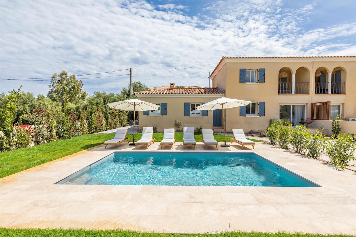 Villa Gabriel insta Casaviva Découvrez notre villa rénovée à Calvi : 4 chambres, 3 salles de bain, espace de vie avec salle à manger, extérieur ombragé, piscine privée, jardin, parking gratuit. À 5 min de la plage de Calvi, commerces, et restaurants, avec rivières à 30 min. Profitez d'un séjour idyllique dans un cadre luxueux et paisible, idéal pour explorer la beauté de Calvi et ses environs. Un havre de paix vous attend pour une expérience inoubliable.