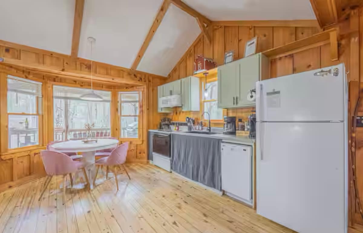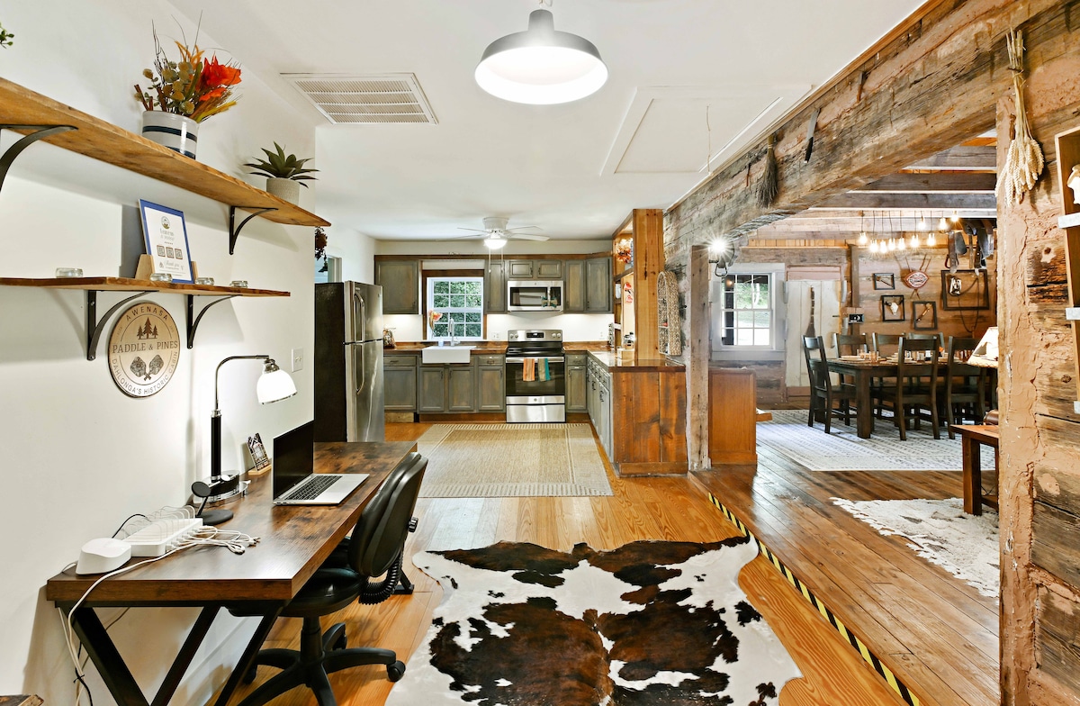 When high design meets authentic log cabin, you get the WOW that is Houndstooth Hideaway. StayDahlonega brings you this rescued log cabin which sits comfortably in the heart of wine country yet is only 12 minutes to downtown Dahlonega. You can feel the history in the walls; reclaimed materials at every turn, carefully curated details, and handsome logs assembled by our expert craftsman. Curl up with a great novel, explore the grounds, and a cozy night sky. This is Cabin Style at its finest.