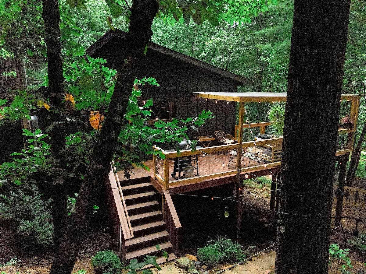 Perfect for a romantic couples getaway, small family vacation or a small group of friends! Enjoy our little treehouse nestled by the Chestatee River in Dahlonega, GA. Spend your day hiking the nearby trails, being lazy in a hammock by the river or visiting historic Dahlonega. Don’t forget to visit a winery or two to find out for yourself why Dahlonega has been called, “The Napa of the South”. Short Term Rental License: STR-21-0016