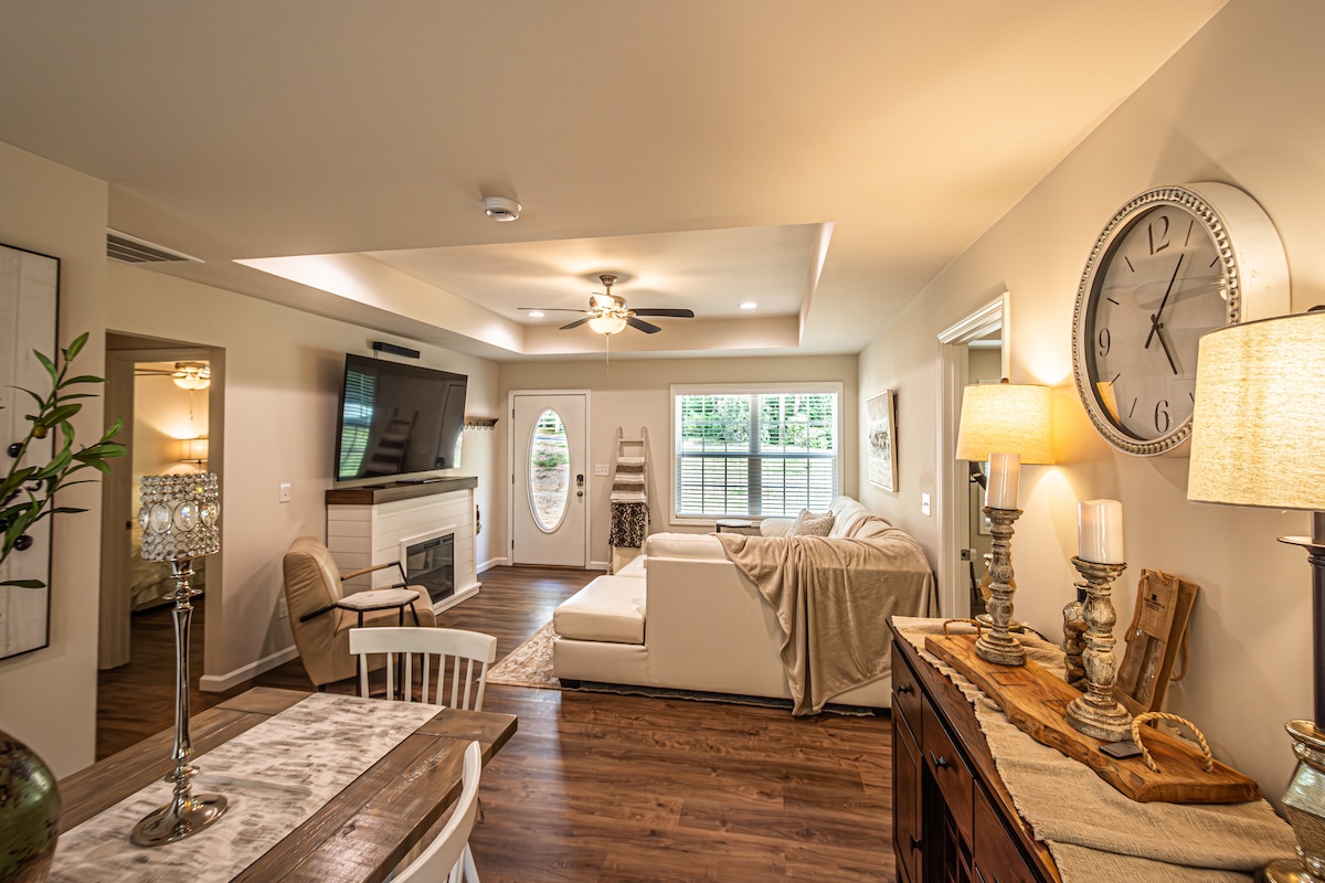 New pet-friendly home less than five minutes from the downtown Dahlonega Square. You are also: -half a mile from the start of the 3/6 Gap route -5 minutes from the University of North Georgia -20 minutes from the Appalachian Trail and other hikes -5 miles from Cavender Creek Vineyards -6 minutes from Montaluce -30 minutes from Helen The home has TVs in every bedroom. The family room features a giant sectional couch perfect for a movie night or ball game. 500 meg internet! Tesla charger