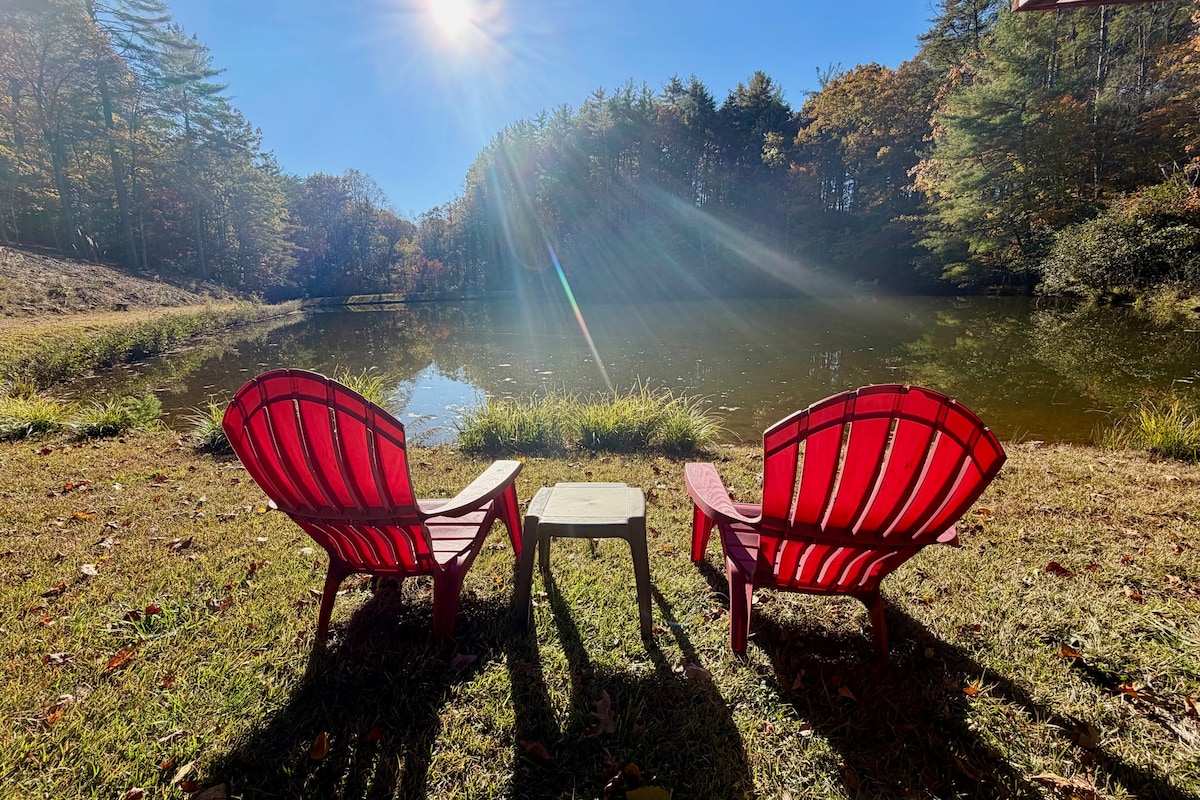 Secluded 25-acre ranch in North Georgia Mountains + a private lake! This listing is for the Main House only. You’ll have the 3BR Main House (2.5 baths) with a chef’s kitchen, sunroom with pool table, and plenty of space to gather. Sleeps 8. Enjoy the fishing dock, private trails, firepit nights, and outdoor dining, minutes from local wineries and the Historic Dahlonega Square. The detached Carriage House apartment is not included with this reservation - see other listing for full property.