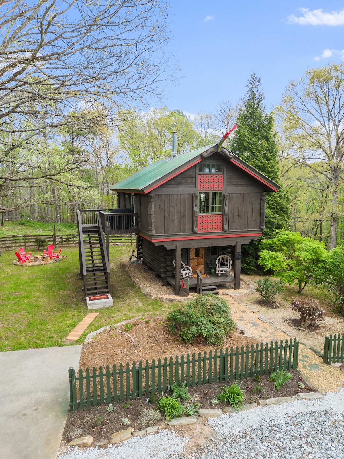 Experience Dragon House: the only Stabbur (traditional Norwegian Cabin) with a Fire Breathing Carved Dragon in Dahlonega! Enjoy whimsy, privacy, and relaxation while being close to Downtown Dahlonega, Wineries, Shops & Hiking! Located only 8 mins from Downtown Dahlonega! The Dragon House is perfect for small groups, families, and couples! This enchanting & renovated cabin offers guests premium amenities including a game room, King Bed, NEW Tree Net, fire pit, swing bed, Roku TVs, and more!