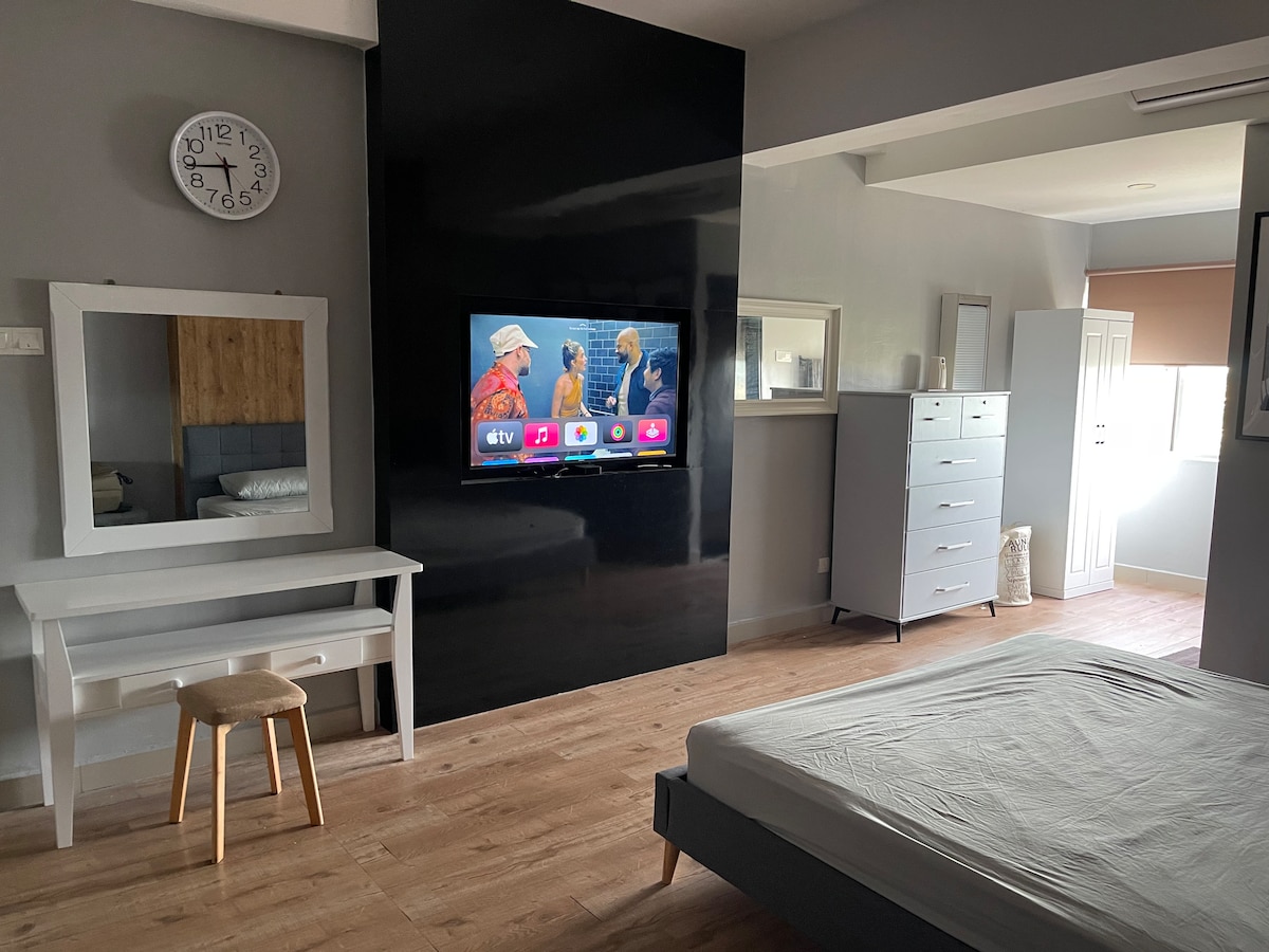 Stylish apartment in town with fast wifi, Astro full pack, Netflix, and Disney+. Enjoy access to pools, gyms, and a rooftop sky garden. Centrally located near AEON mall, TGV cinema, and restaurants. Experience it yourself!