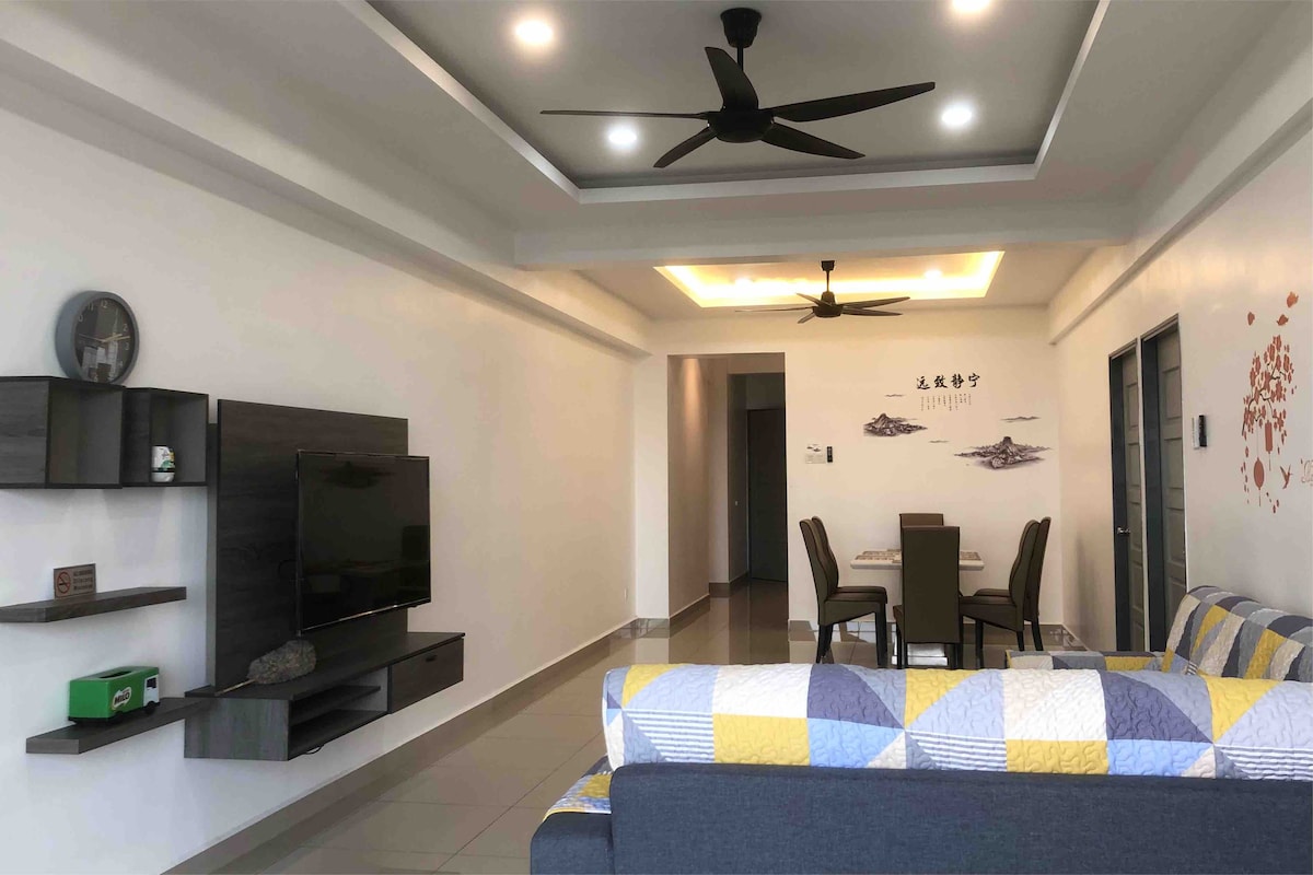 Stylish apartment in town with fast wifi, Astro full pack, Netflix, and Disney+. Enjoy access to pools, gyms, and a rooftop sky garden. Centrally located near AEON mall, TGV cinema, and restaurants. Experience it yourself!