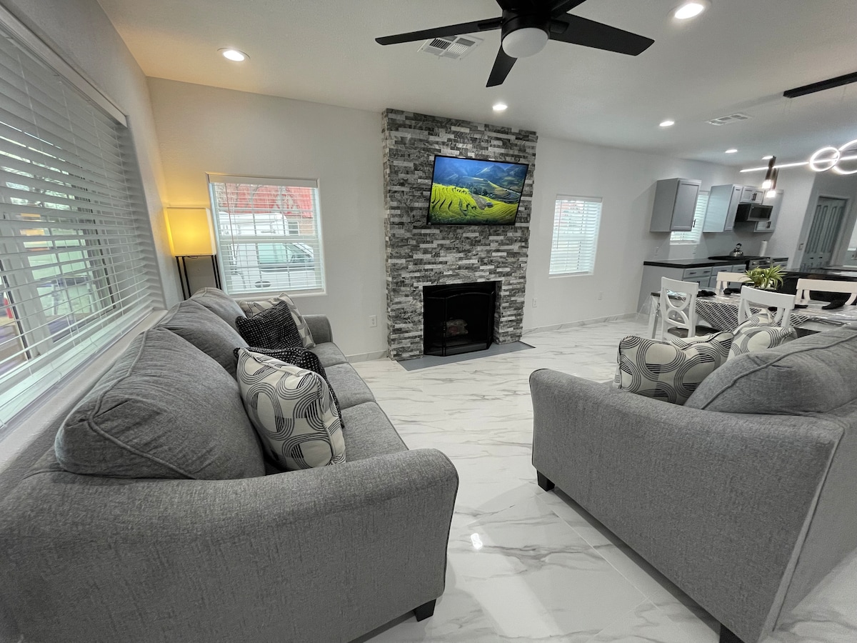 Modern Comfort Meets Style in Deming Step into this beautifully designed modern home featuring a bright open floor plan, elegant marble-style floors, and cozy yet stylish furnishings. Whether you're in town for work or leisure, this home offers the perfect mix of comfort, convenience, and modern charm.