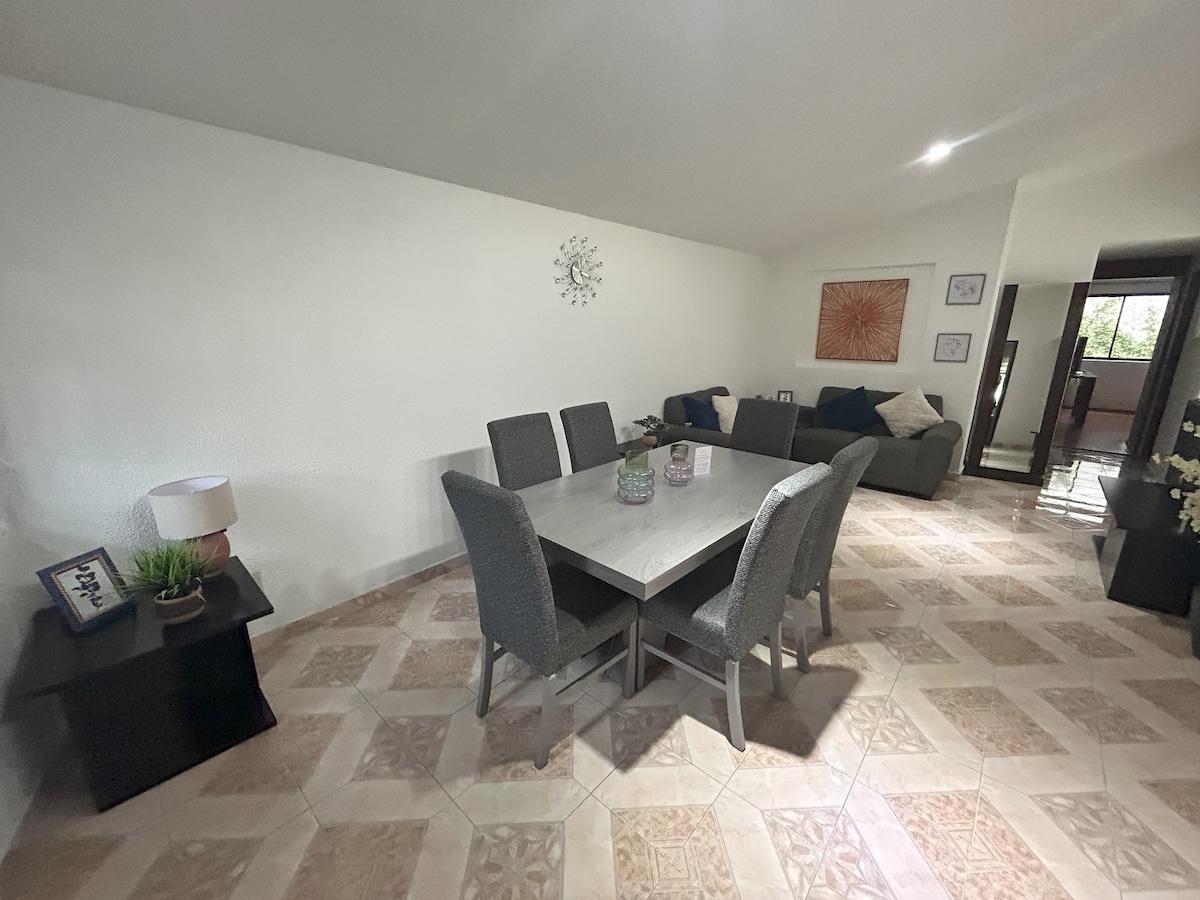 Located in one of the best areas of Cuautitlán Izcalli. Just minutes away from the Ford plant and a 5-minute walk from the beautiful Central Park, it features 3 spacious bedrooms, all with TV, a fully equipped kitchen, living room, dining area, 2 full bathrooms, and 2 private parking spaces. With brand-new furniture, fast internet, and close to shopping centers, it's ideal for business travelers seeking peace and connectivity, or for those looking for a comfortable and well-located getaway.