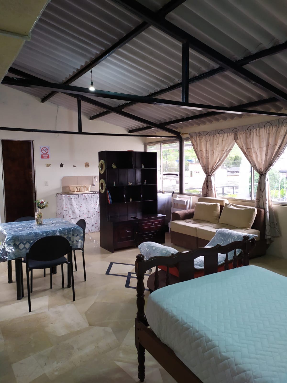 Disfruta de una suite abierta y luminosa con una vista inigualable a la vegetación de Baños. Equipada con una cómoda cama de 2.5 plazas, sofá cama, cocina, comedor, baño privado y una pequeña sala para relajarte. Ideal para parejas, familias pequeñas o viajeros que buscan confort y naturaleza en un solo lugar. ¡Ubicación privilegiada y ambiente acogedor!