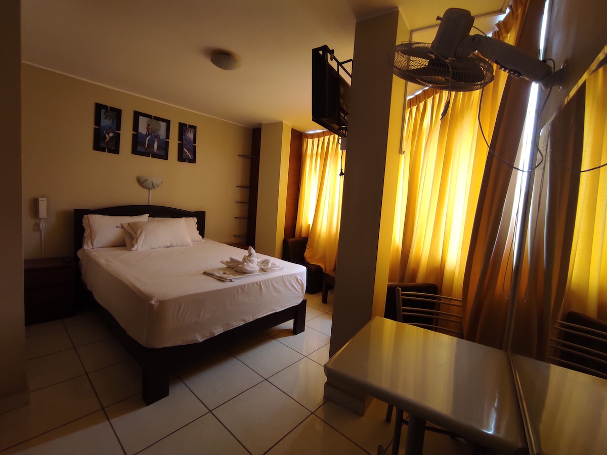 Cuartos dobles y/o matrimoniales Espacio fresco y agradable: sin ruido, tranquilo y cómodo. Ofrecemos una estadía cómoda; ventiladores disponibles, mosquiteros y amplio estacionamiento dentro del local.