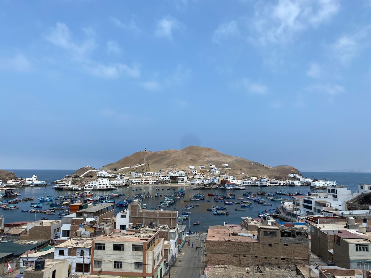 Contamos con una excelente vista panorámica del distrito de Pucusana y el mar. Siéntete relajado y desconectado del ruido, tienes espacios para relajarte y/o hacer home office