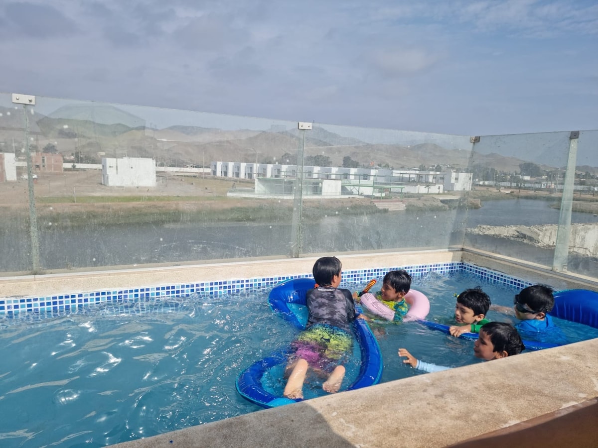 Aprovecha del campo, la comodidad, tranquilidad y seguridad, en esta acogedora Casa de Campo (Pet Friendly), ubicada en el Km 100 de la Panamericana Sur, dentro del Condominio Alto Pradera de Asia (De los Portales) a 5 minutos del Boulevard de Asia. Casa con piscina privada, zona de parrilla, zona de juegos en terraza como billar y fulbito de mesa, zona de videojuegos y otros. Puedes disfrutar de la laguna, de caminatas o pasear en bicicleta, descubriendo lindos paisajes en Asia Pueblo.