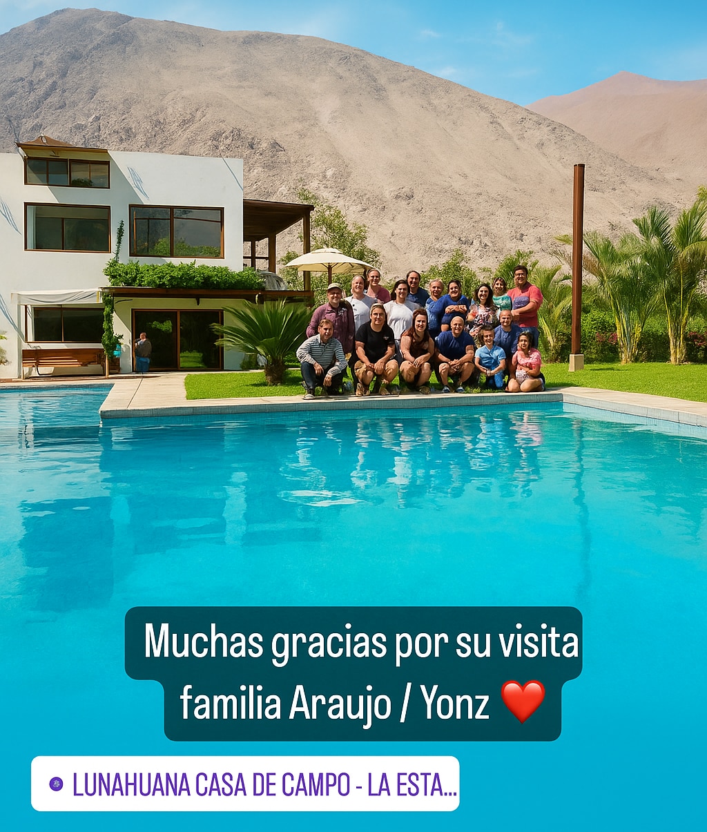 Bienvenidos a La Casa Bella de Lunahuaná 🌞🍃 Disfruta de una experiencia única y acogedora donde el sol siempre te acompaña. Ubicada en una zona tranquila y segura, rodeada de naturaleza, es ideal para desconectarte del estrés y reconectar con lo esencial: paz, aire puro y momentos inolvidables. Nuestra casa combina el encanto rústico con toques modernos gracias a sus amplias mamparas de vidrio que llenan los espacios de luz natural. Perfecta para familias, parejas o grupos de amigos.