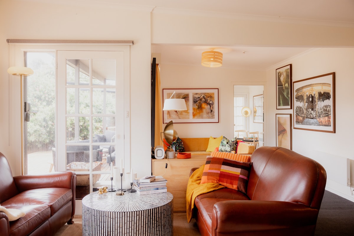 The Bruny Boathouse offers sweeping views across the d’Entrecasteaux Channel to Satellite Island and Hartz Mountain. Centrally located in Alonnah, it’s the perfect base for exploring Bruny’s wild beauty. Slow down with sea air and gum trees, gather by the fire pit with marshmallows, or soak under the stars in the outdoor bath. A family-friendly shack with all the comforts, made for island living.