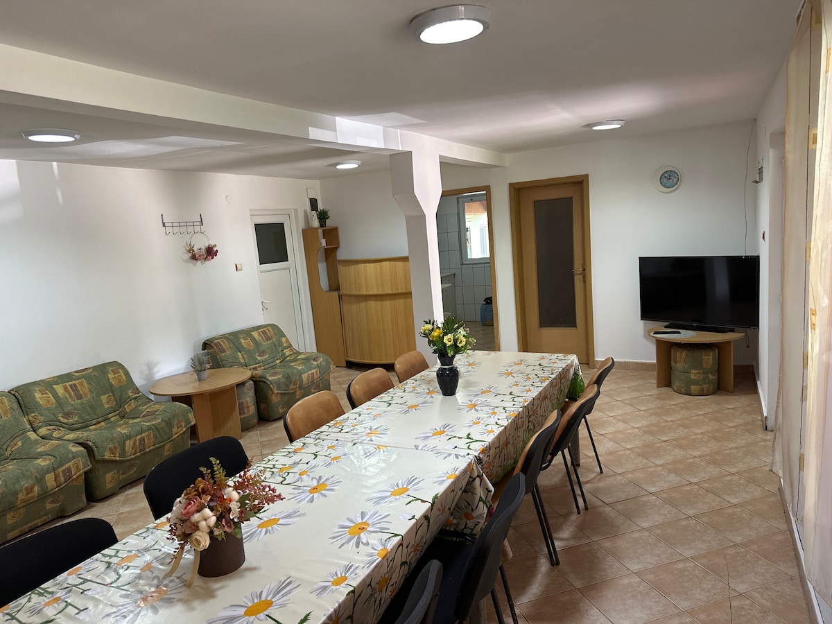 Relaxează-te cu întreaga familie în această locuință liniștită. Casa este dotat cu camera, bucătărie și baie. Camera cuprinde un pat matrimonial, canapea extensibilă, televizor si WIFI gratuit + aer condiționat si balcon. Bucătăria este dotată cu aragaz, frigider, cuptor cu microunde, aparat de cafea, etc … În curte se află un foișor, balansoar, hamac și masă de ping-pong, perfecte pentru momentele de relaxare. Locuri de parcare disponibile, supravegheate video.