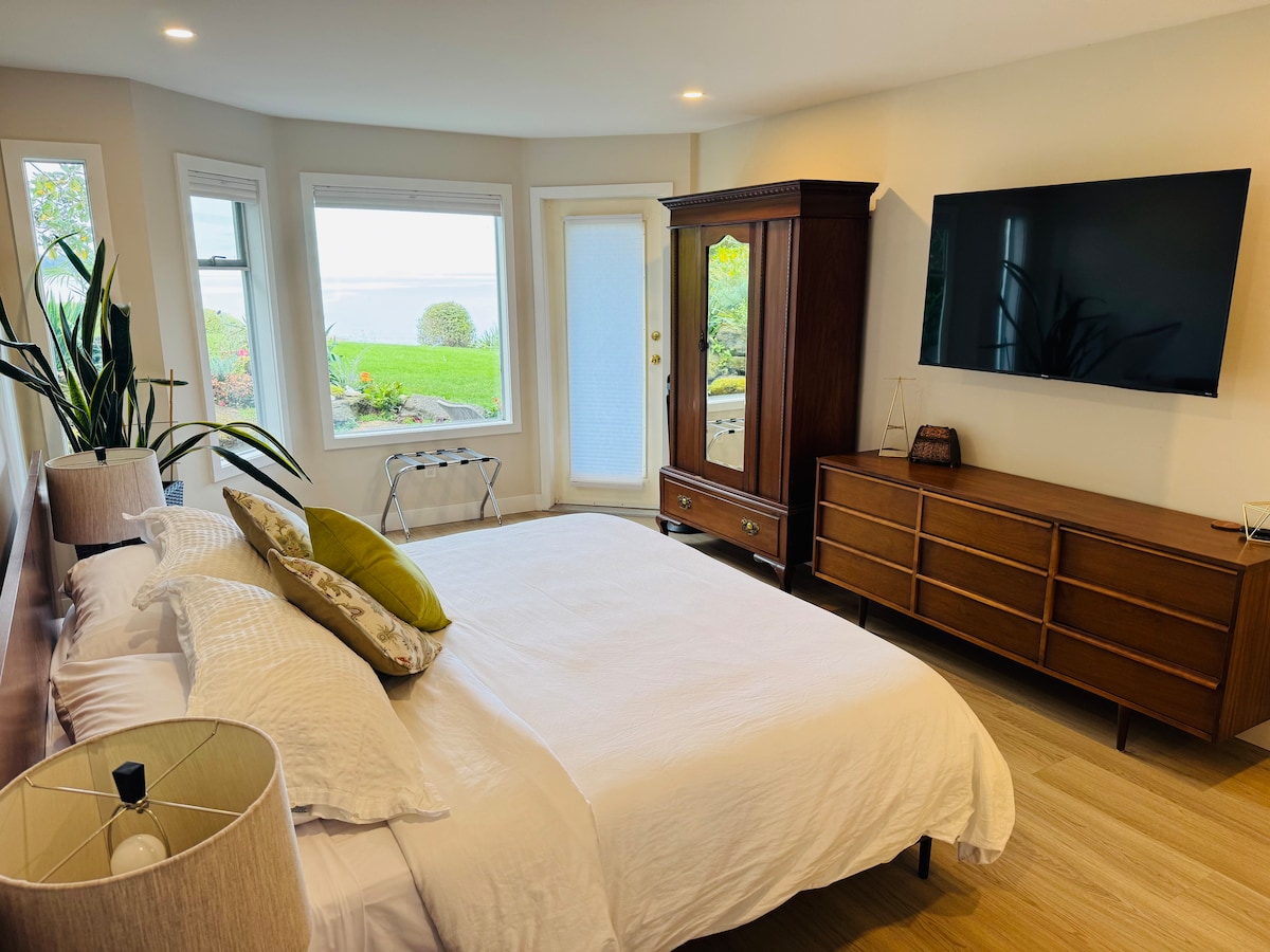 Enjoy a stylish experience with endless ocean views from this centrally located brand new luxury private rooftop suite. A stone's throw from the beach....golf, hike, explore, shop and dine. All are easy walking distance. Relax with a glass of wine on your private 700 sqr ft patio while listening to the waves and enjoy incredible sunsets….or enjoy the ever changing views by the cozy fireplace through the floor to ceiling sliding glass doors. Seals, whales and eagles are favourites to spot!