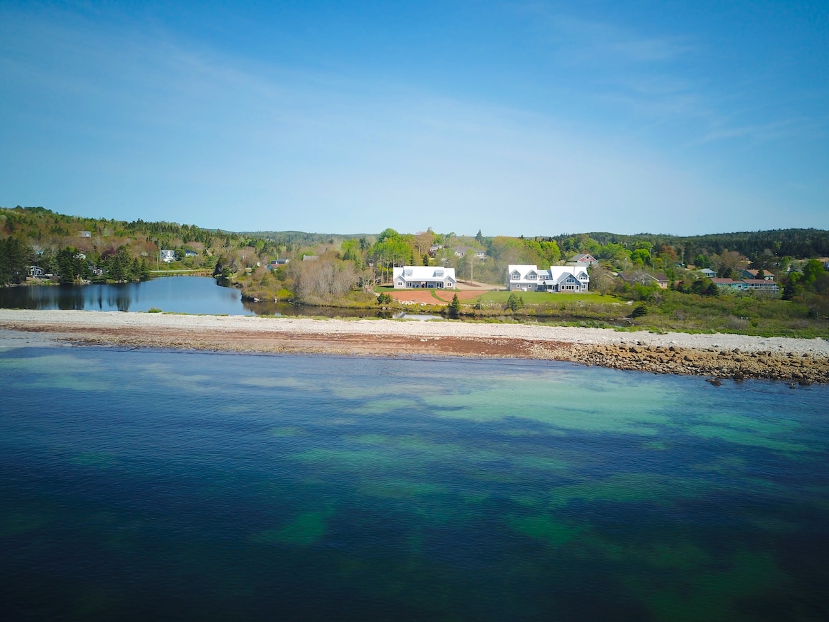 Enjoy one of the most unique private oceanfront properties in southern Nova Scotia! A newly furnished year-round home with all the amenities, 1,000ft of oceanfront with beautiful docks, a pebble beach and stunning sunsets! At night, enjoy the sky full of stars and sounds of the ocean around the large fire-pit, and in the morning watch the sunrise over the crystal clear lake in front of the home. Enough room for family and friends, located within minutes of Peggy’s Cove and 25 min from Halifax.