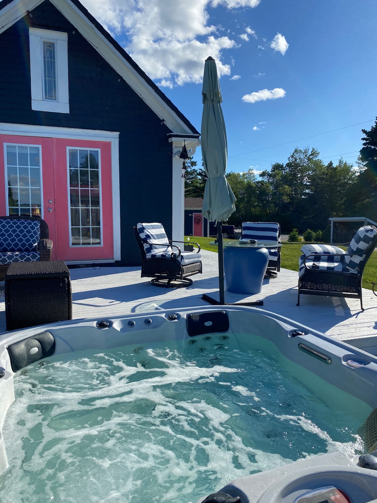 Much more than an airbnb . A lovely country cottage representing the best of the South shore. Centrally located to all of the neighboring towns and attractions; 70 minutes from the airport. Living room with comfortable furnishings, fully equipped home with BBQ, hot tub and fire-pit. Upstairs, an attic-style bedroom with double bed and en-suite bathroom, private deck and independent entrance. A small dog is more than welcome as well.