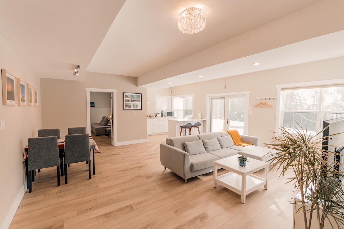 Executive Lakefront Retreat: Escape to our luxurious and private two bedroom (plus den) apartment above the garage, boasting exclusive amenities for a serene stay. Enjoy: Private Hot Tub & Outdoor Propane Fireplaces Swimming Pool & Full Outdoor Kitchen Water Activities: Kayak, paddle boat, fishing rods, and dock access Nearby Conveniences: Within 5 km, find Tim Hortons, supermarket, drug store, liquor store, gas station Convenient Location: Just a 20-minute drive to downtown Halifax.