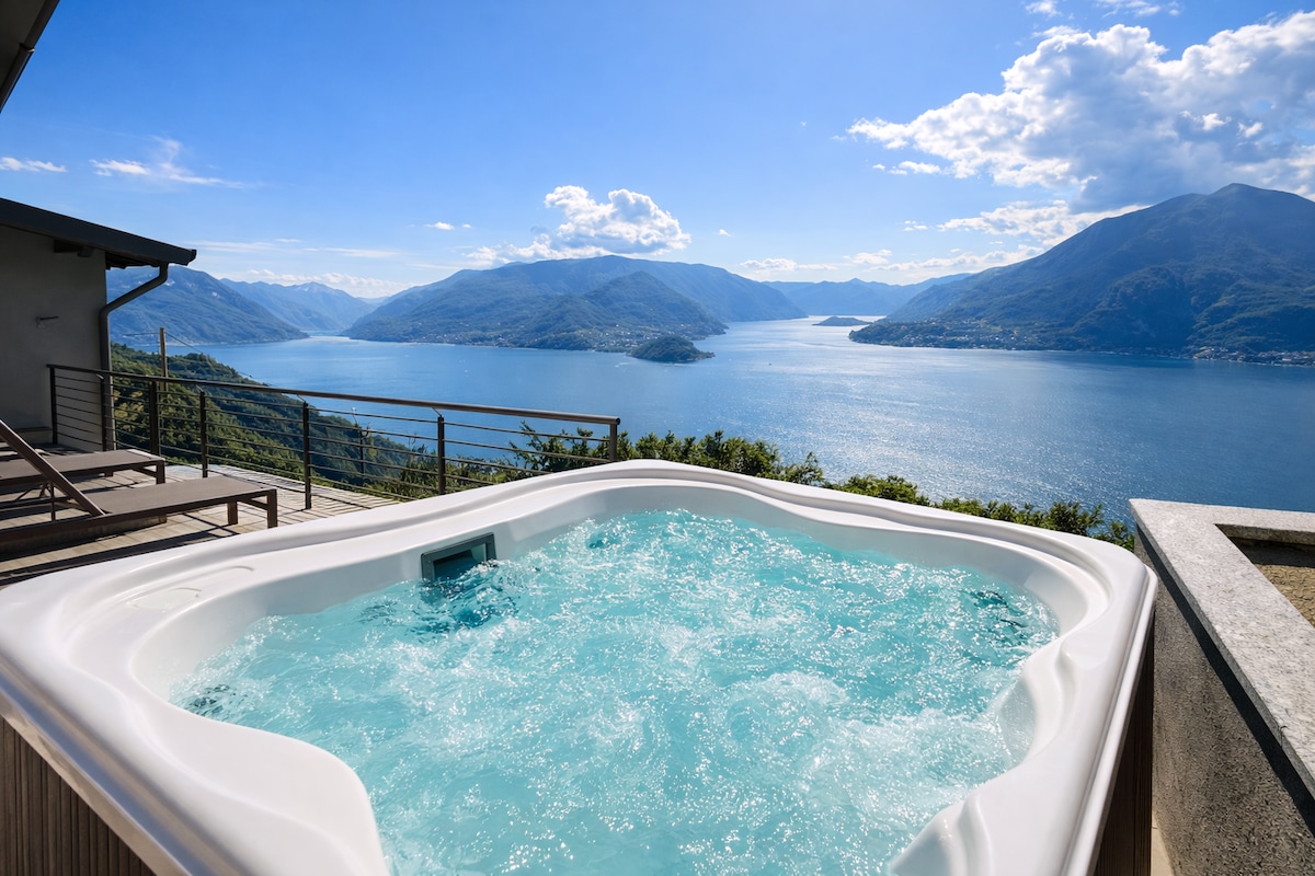 If you want to enjoy the Lake Como from the top, while sipping a glass of good wine and taking a relaxing bath in the brand new Jacuzzi, this is the place for you! The recently renovated second floor apartment is situated in one of the most picturesque settings of the Lake Como, almost 350m above Varenna (20 min drive), and it can host up to 3 guests. The first floor belongs to a family who lives there all year round, but just the entrance is shared. Free wifi installed in all of the property.