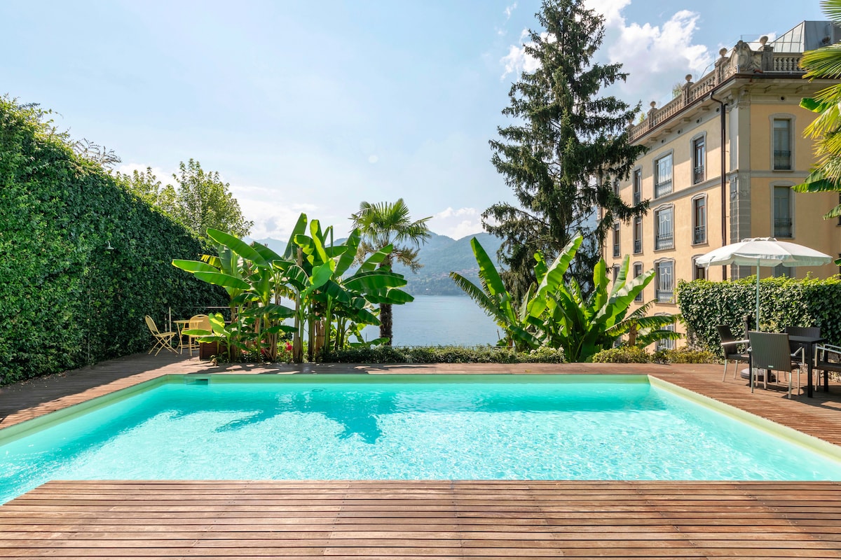 布雷瓦别墅(Villa Breva)美丽的泳池,可欣赏湖景