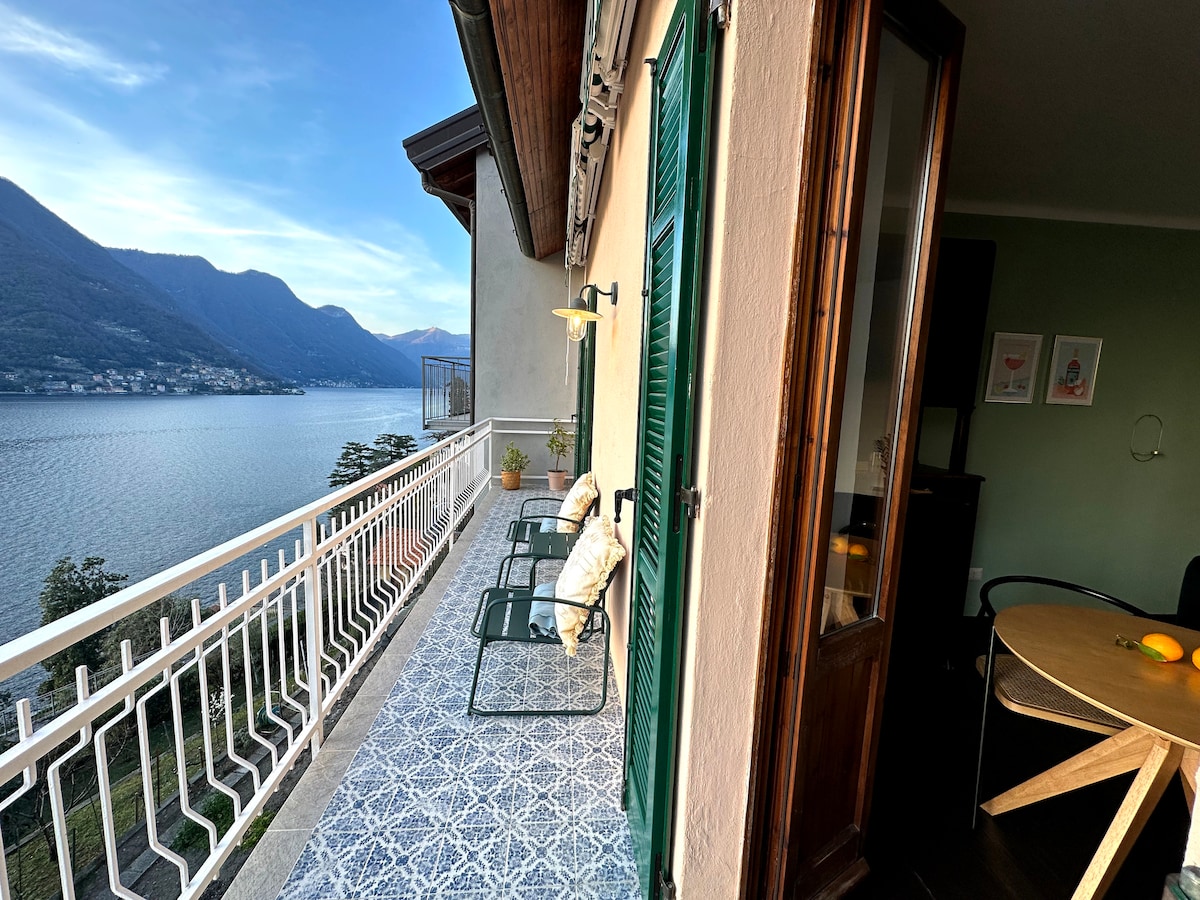 Peaceful & serene Lake retreat. A stunning 2-room, 45m²/485ft² flat with a private terrace & shared garden (shared with only 2 other units). Majestic 180° Lake views from both the terrace & the rooms. Curated interiors with modern boho-chic design. The garden & terrace boast breathtaking views of the Lake (& George Clooney’s villa, right across the shore!). Unforgettable sunsets await u at the Lake's most picturesque retreat! 2-min walk to the public boat dock & 5-min to a lake bathing spot.