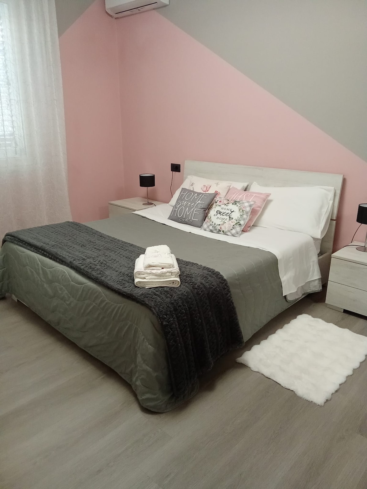 Con questo alloggio in centro, la tua famiglia sarà vicina a tutto. Appartamento confortevole arredato e attrezzato per ogni tua esigenza. Cucina accessoriata di tutto, forno, frigo, lavatrice e macchina caffè. Camera da letto con letto extra large, comodo armadio, tv a schermo piatto e condizionatore. Bagno provvisto di asciugamani, phon e tutti i prodotti per l'igiene personale. Soggiorno arredato con divano letto, lettino singolo, tv a schermo piatto e condizionatore.