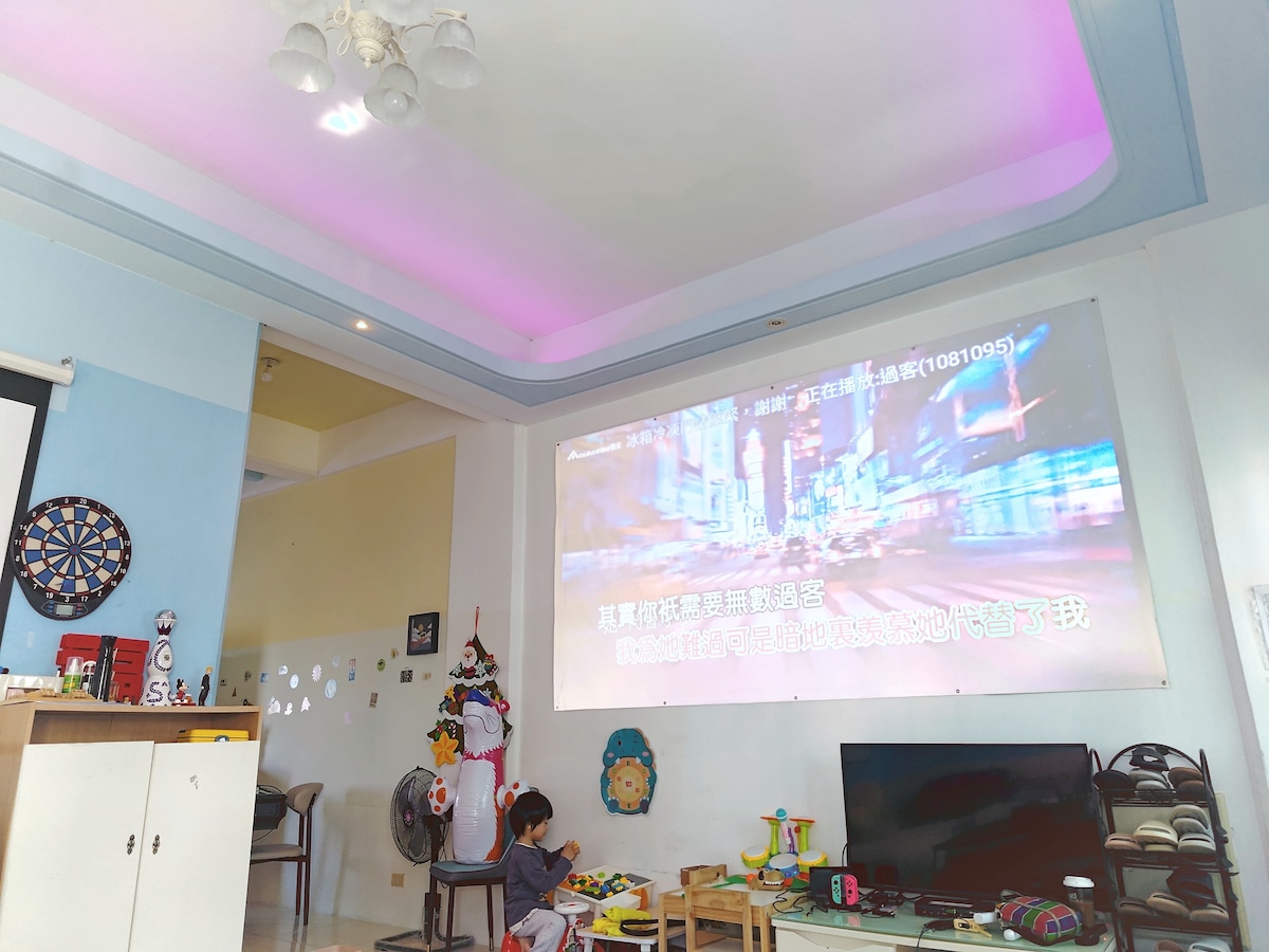 水景璞堤~獨棟4+1房20人/100寸唱歌/電麻桌/飛鏢機/Switch/桌遊/烤肉