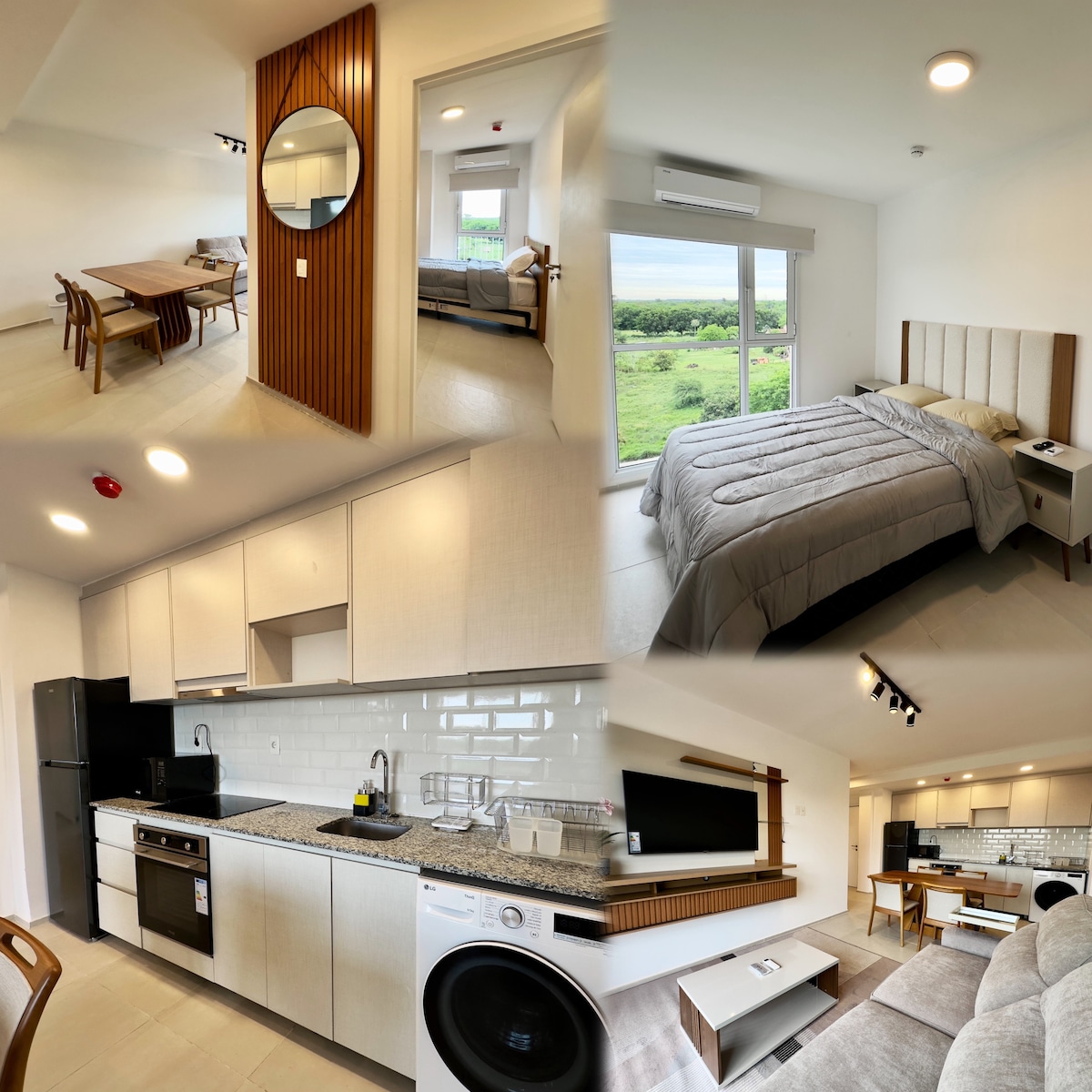 Moderno departamento totalmente amoblado a estrenar, a minutos del aeropuerto Silvio Pettirossi y eje corporativo de Asunción, ideal para viajeros de negocios, escalas o estadias comodas. Check-in 24hs. Con muebles nuevos, Smart TV, WiFi y un cómodo sofá cama (¡y más!). Relájate en la gran piscina o disfruta de las parrillas, la cancha de pádel y cancha multiuso para fútbol y vóley. Ideal para una estadía perfecta. ¡Reserva ahora!