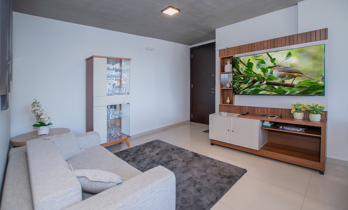 A solo 10 minutos del aeropuerto, este departamento combina diseño moderno, confort y serenidad. Ubicado en un condominio cerrado con acceso controlado, ofrece total seguridad y privacidad. Cada detalle fue pensado para crear un ambiente cálido y con mucho estilo, ideal para descansar, trabajar o disfrutar unos días tranquilos. A 400 m de Villa Sofía y cerca del súper Los Jardines. Zona residencial, verde y silenciosa, a 20 min del WTC y Shopping del Sol.
