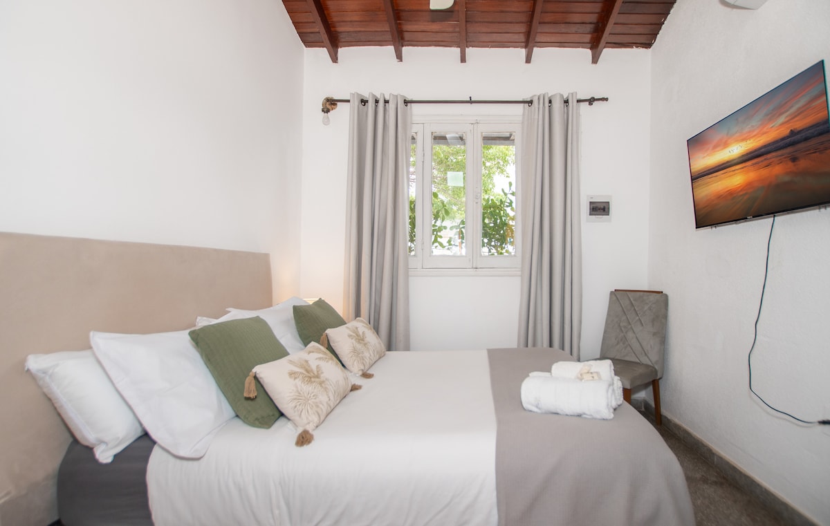 Disfrutá un apartamento moderno, muy cómodo y bien conectado para 1, 2 o 3 personas, a minutos del Aeropuerto Internacional. Supermercado 24/7 a 1 cuadra, farmacia y restaurantes próximos. A pasos del parque Ñu Guasu, el Comité Olímpico, la Conmebol y el CIT. Acceso rápido al Eje Corporativo, Shopping del Sol y La Galería. Equipado con aire acondicionado, wifi, mesa de trabajo, TV, cocina y patio privado con hamaca. Servicios de traslado y desayuno. Ideal para viajes en pareja o conexión aérea.