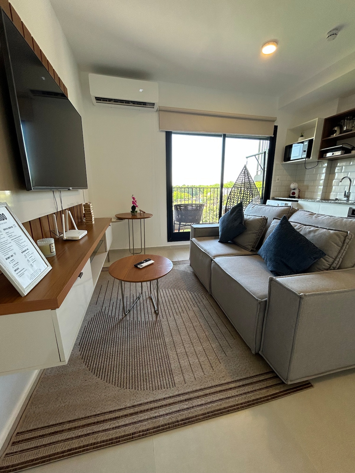 ¡Disfruta este increíble monoambiente de 28m² ideal para escapadas o estadías prolongadas! Acceso incluido a una espectacular piscina gigante, gimnasio equipado, sala de juego. ¡Todo lo que necesitas para relajarte o divertirte! ¡Reserva ya y vive la experiencia! IMPORTANTE: Estacionamiento gratuito vigilado afuera del recinto, en Zona tranquila y segura