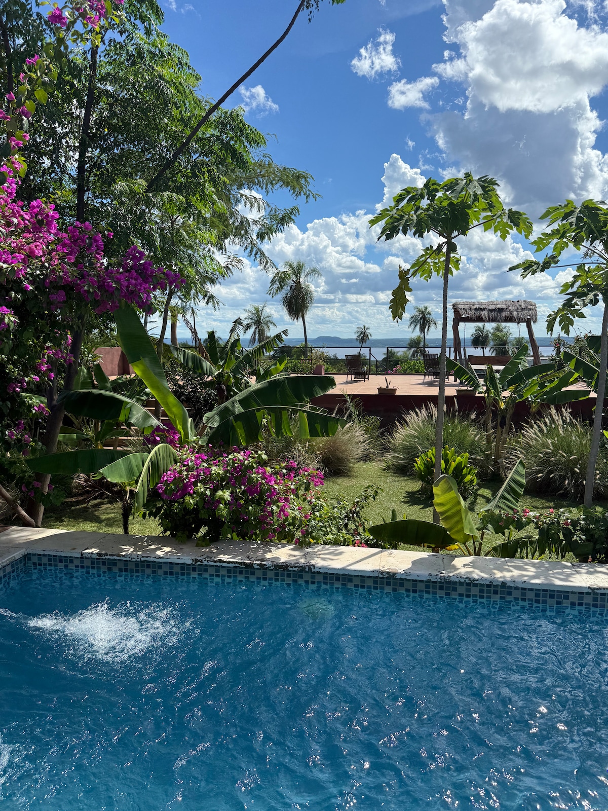 Cabañita con dos habitaciones, un baño, cocina equipada y sala. Afuera una pequeña galería y un jardín con una piscina/jacuzzi privada y una hermosa vista al lago Ypacarai y al atardecer. Se encuentra en una propiedad con otras cabañitas más pequeñas independientes y un área común con patio, terrazas, quincho y una piscina más grande con agua salada. Un lugar para relajarse y conectarse con la naturaleza: Tu casa de campo cerca de la ciudad y con todas las comodidades.